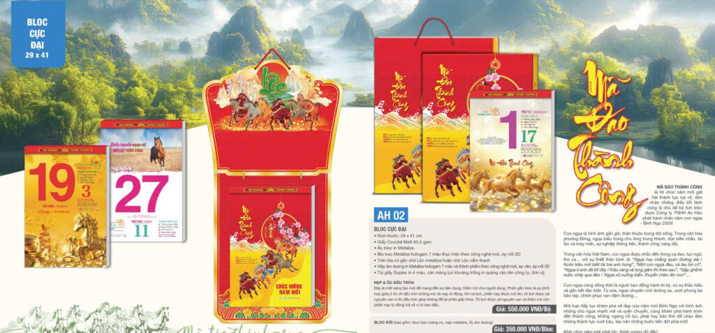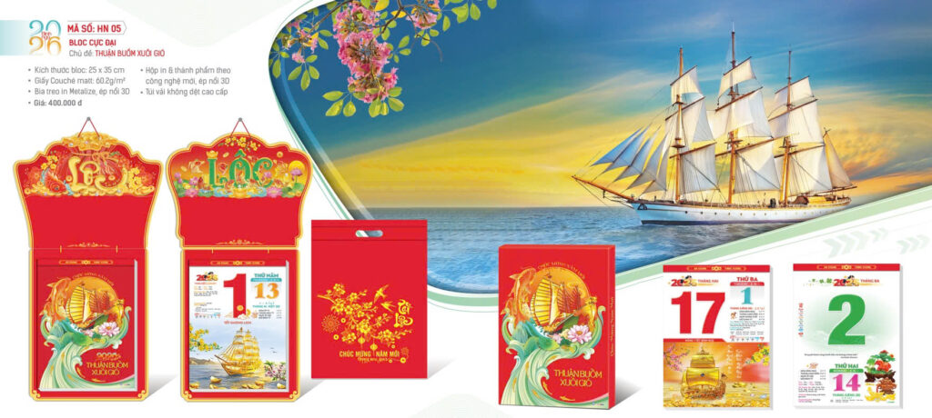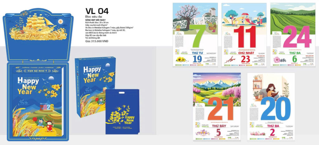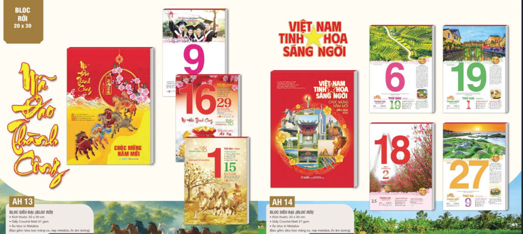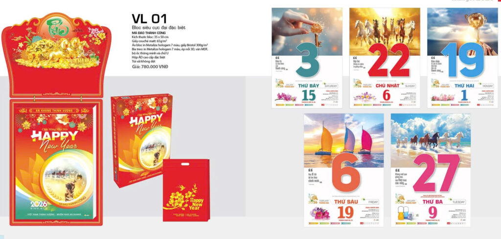 So với những loại lịch tết treo tường khác, chi phí in lịch block treo tường cao hơn nhiều lần, giá lịch bloc 2026 phụ thuộc vào size lịch.