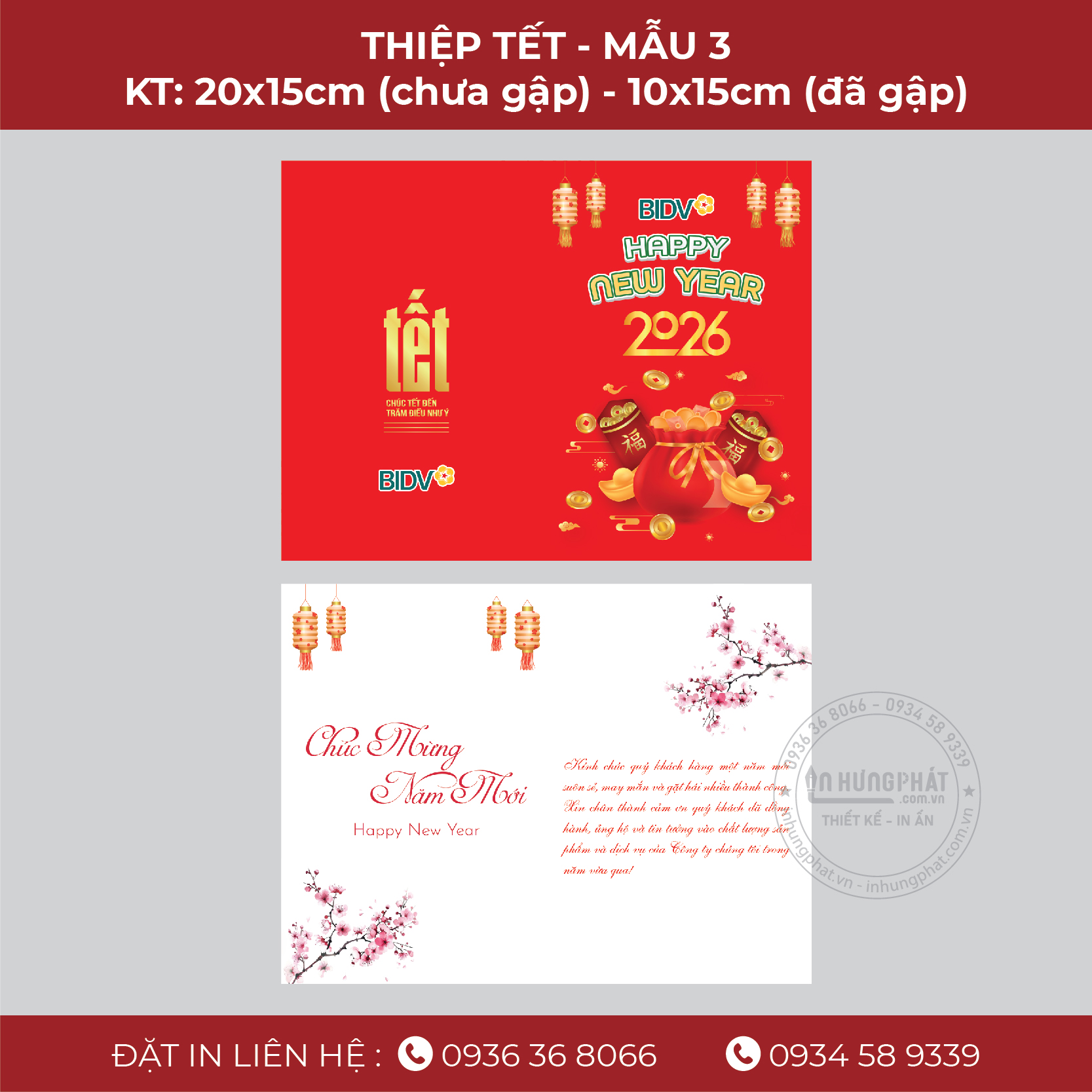 CÔNG TY IN HƯNG PHÁT cung cấp dịch vụ thiết kế, in ấn và gia công thiệp chúc mừng năm mới trọn gói, giá rẻ và chuyên nghiệp.