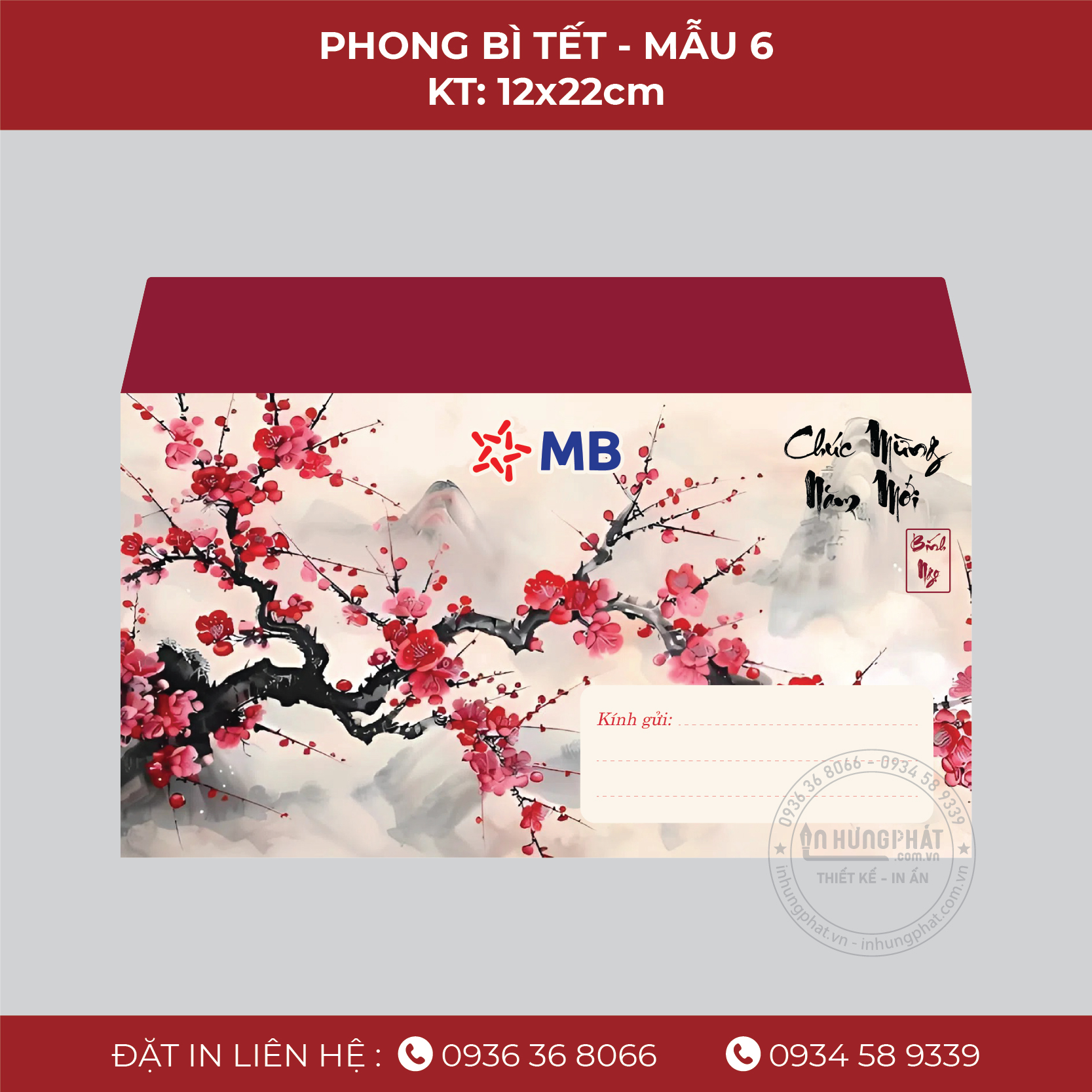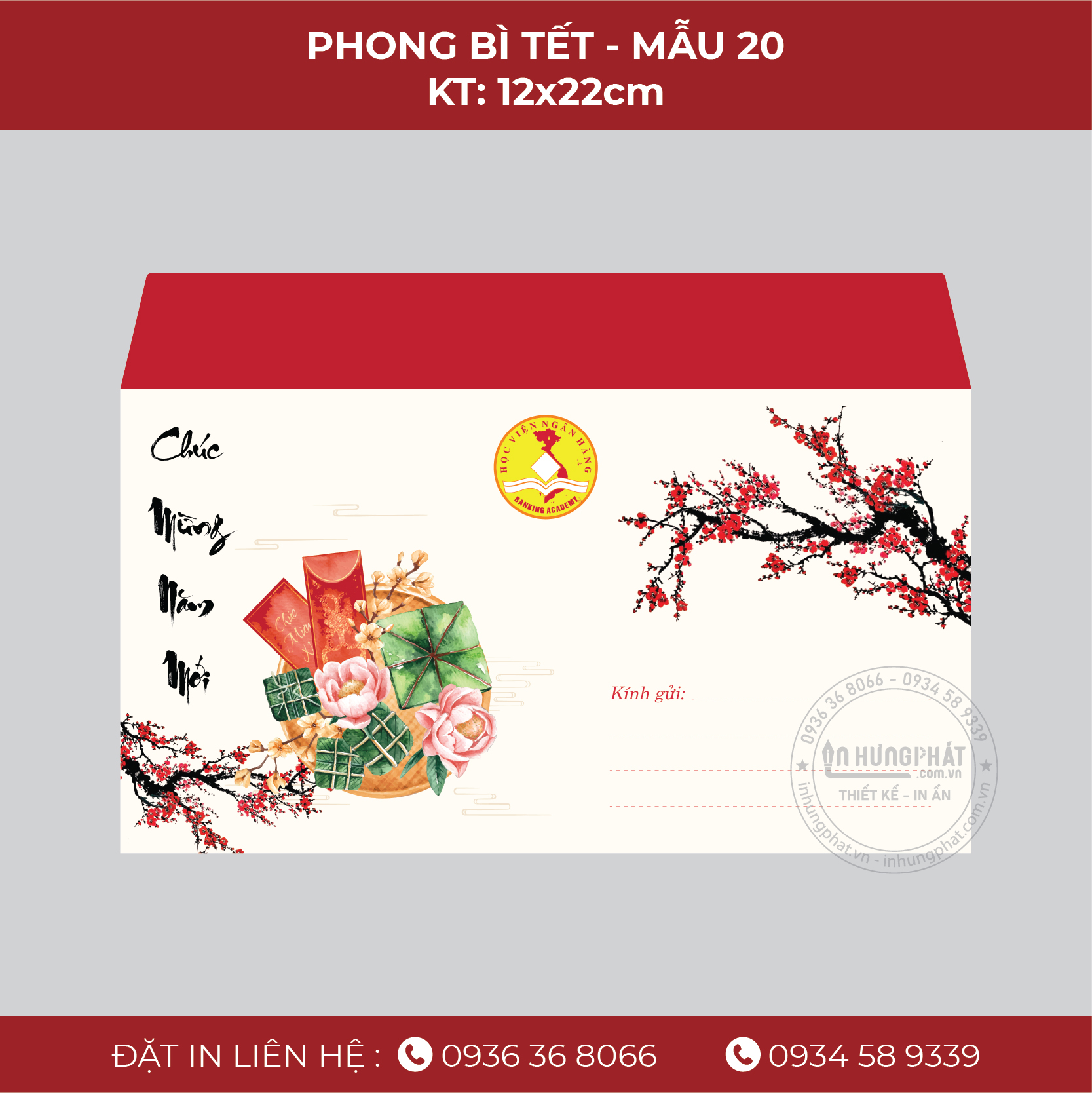 Phong bì đựng thiệp tết hoa văn hoa đào bánh trưng ngày tết