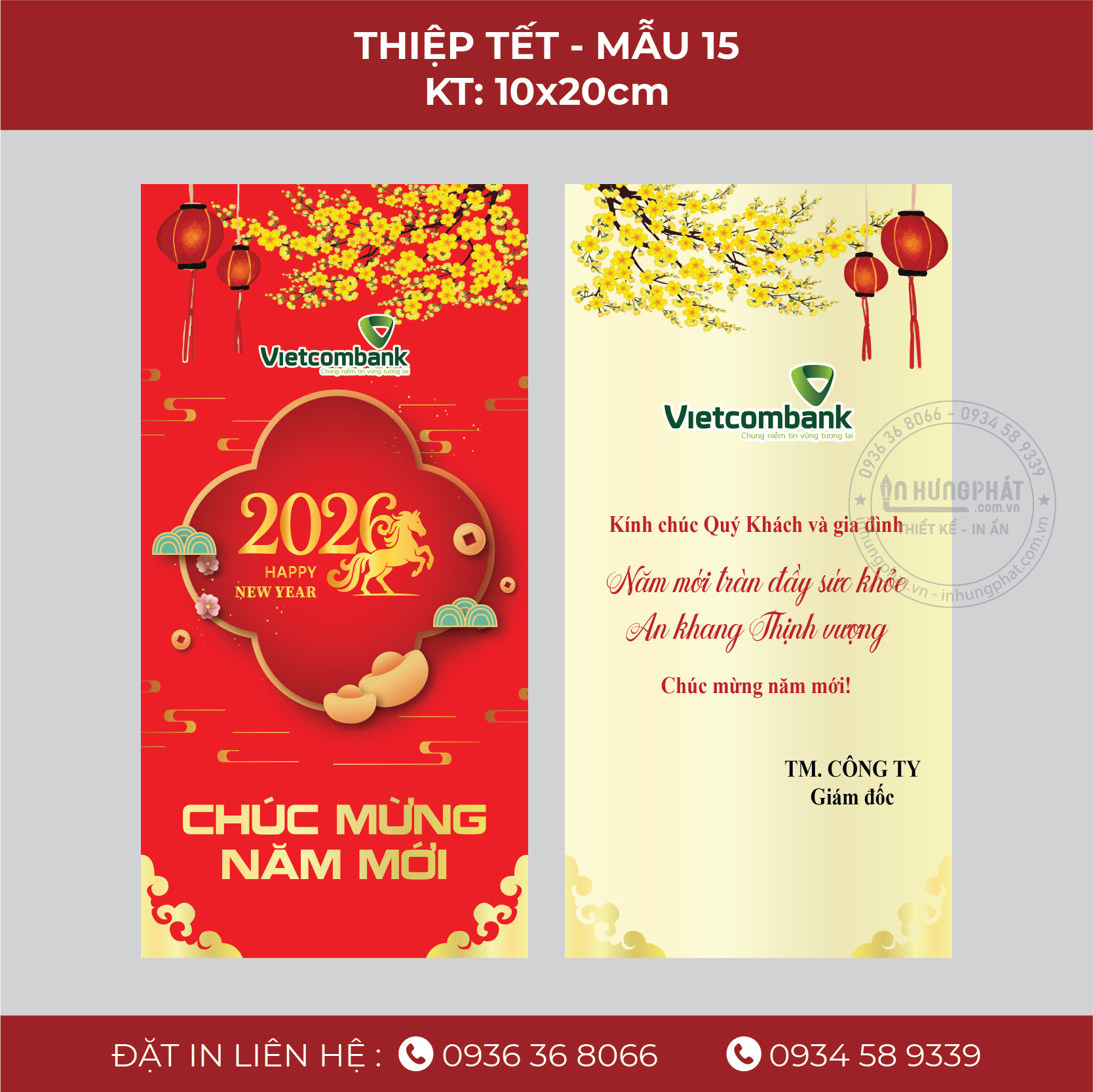 Mẫu thiệp chúc mừng năm mới 2026 kích thước 10x15cm